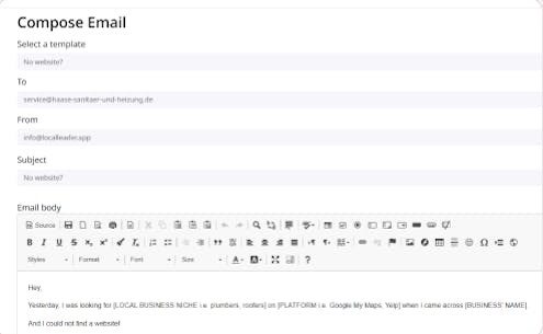 - Local Leader has a built-in cold email system