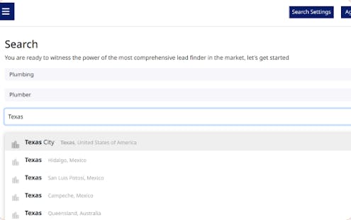 to find new leads or access the previous searches.