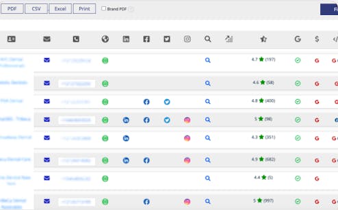Instantly know the ratings of a local business and their review count - very important info for offering reputation management (leads with fewer ratings) as well as review generation (leads with low review count) services.